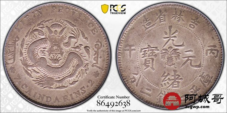 Lot:11 原味 传世包浆 吉林光绪 丙午 龙洋 七钱二分 PCGS AU 55