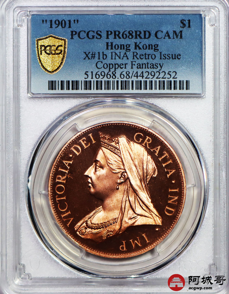 Lot:9 香港1901年维多利亚女王壹圆PCGS PR68DCAM后铸