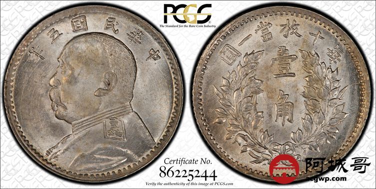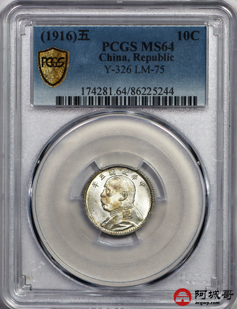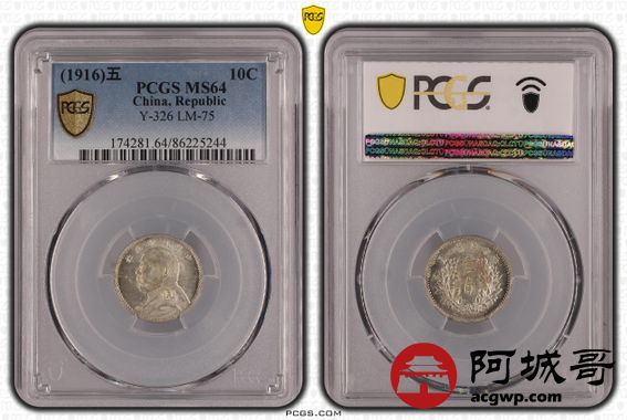 Lot:10 深打 原色光 五年大头壹角 PCGS MS64最高分
