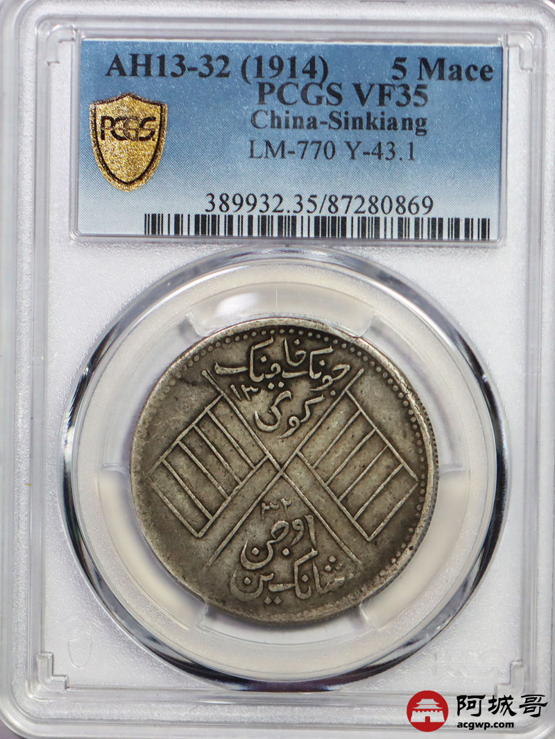 Lot:19 原味老包浆 新疆喀造伍钱 稀少的高分封口饷,大背逆PCGS VF35