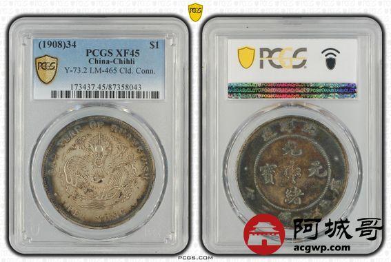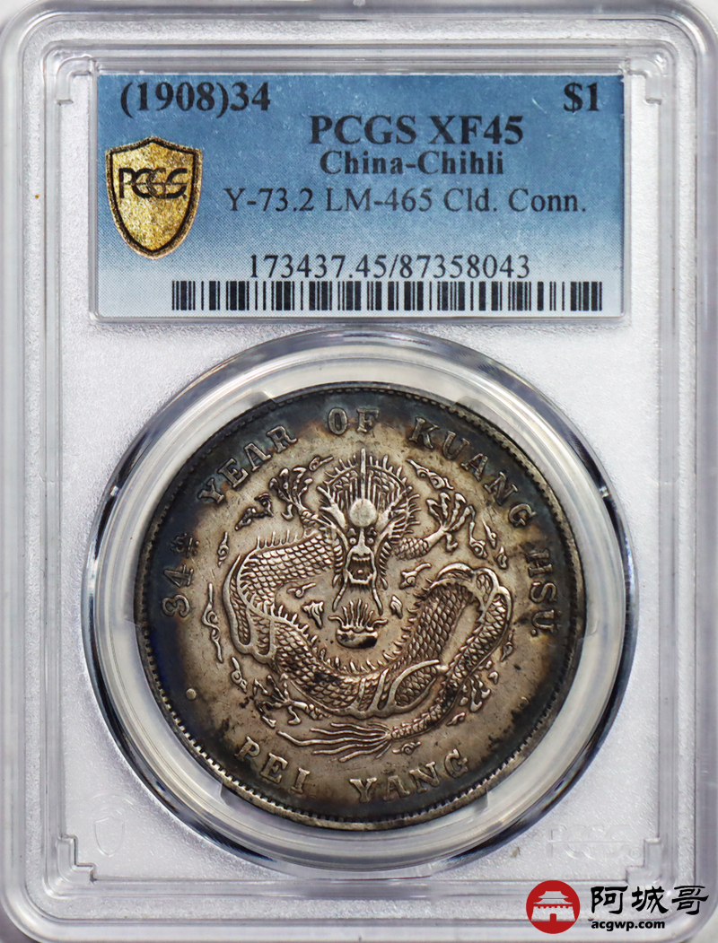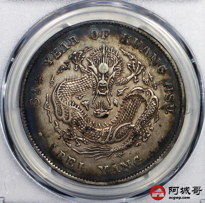 Lot:26 原味背酱彩 北洋34年龙洋七钱二分 PCGS XF 45