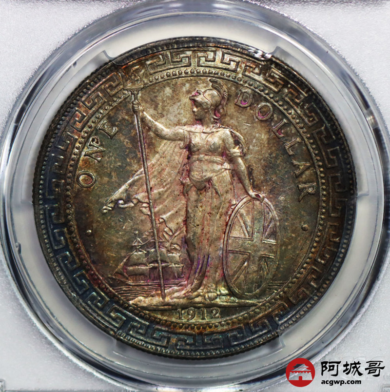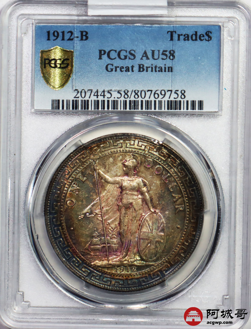 Lot:39 五彩转光 1912年B版站洋壹圆 PCGS AU58