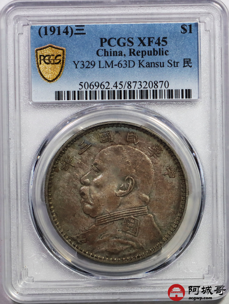 Lot:3 淡彩原味甘肃大头壹圆 PCGS XF45