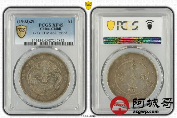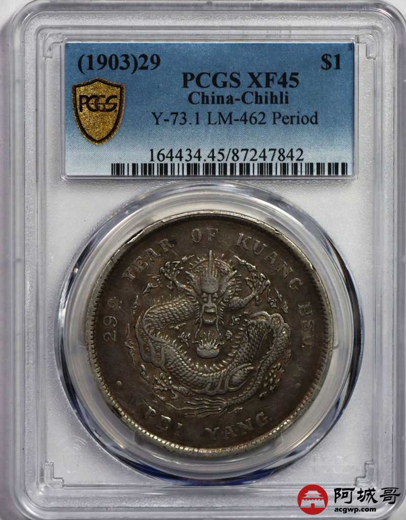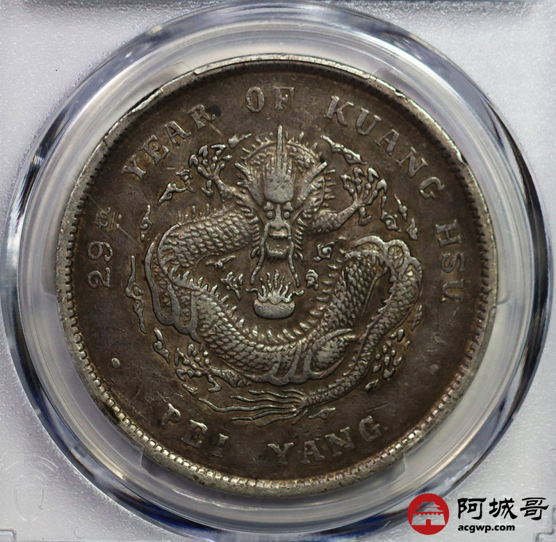 Lot:11 全龙鳞宽边酱五彩包浆 北洋29年光绪七钱二分 PCGS XF45