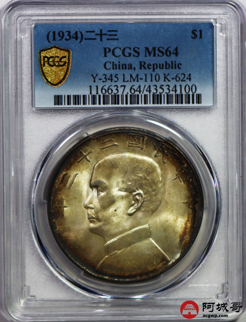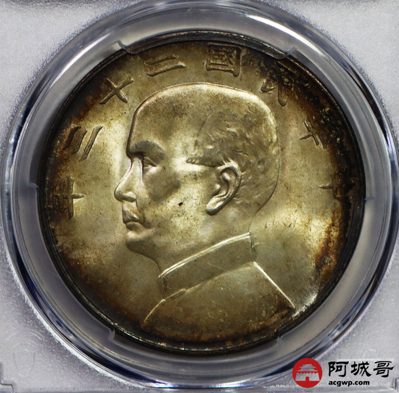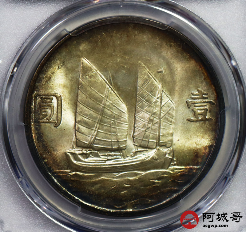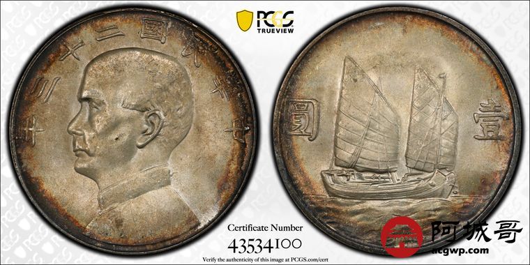 Lot:29 黄油镜面环五彩黑包浆 孙中山二十三年船洋壹圆 PCGS MS64
