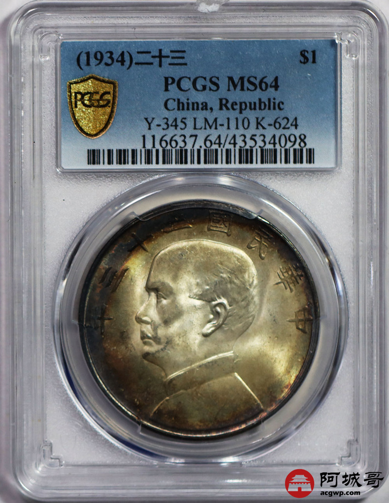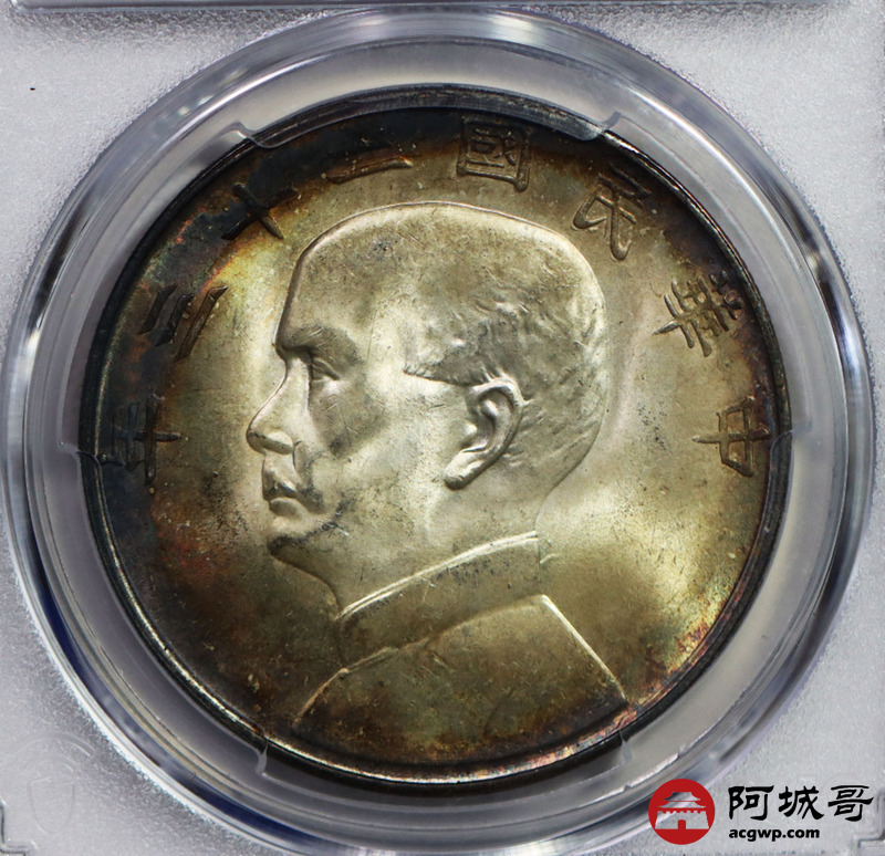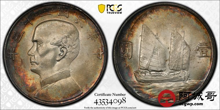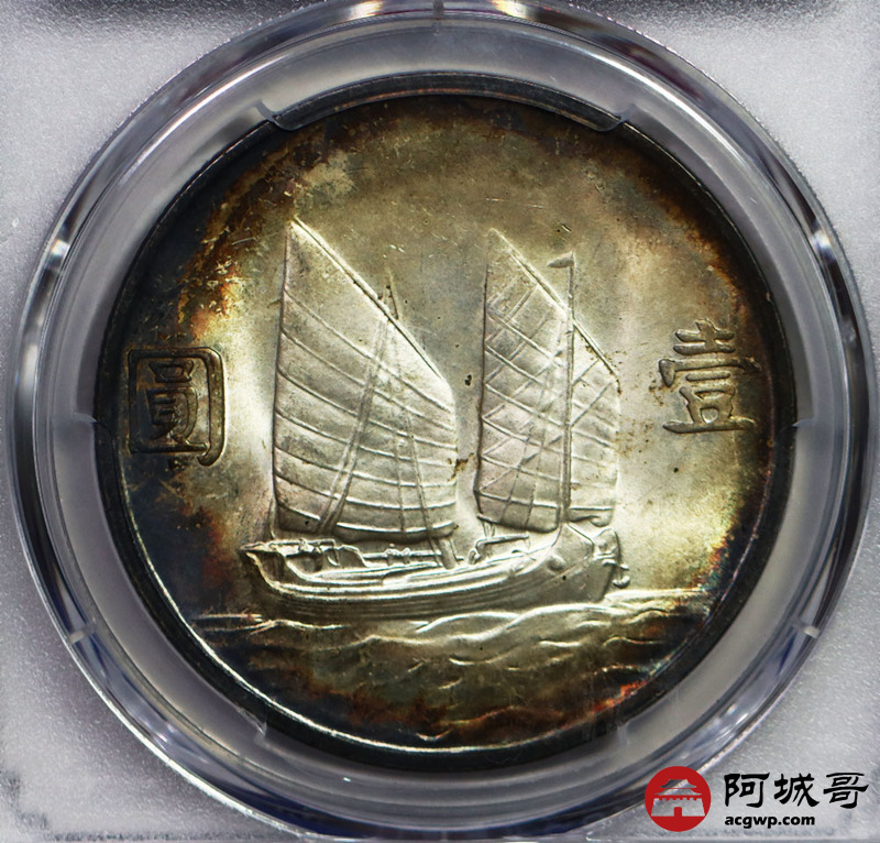 Lot:27 发烧级入骨环五彩油转光 孙中山二十三年船洋壹圆 PCGS MS64