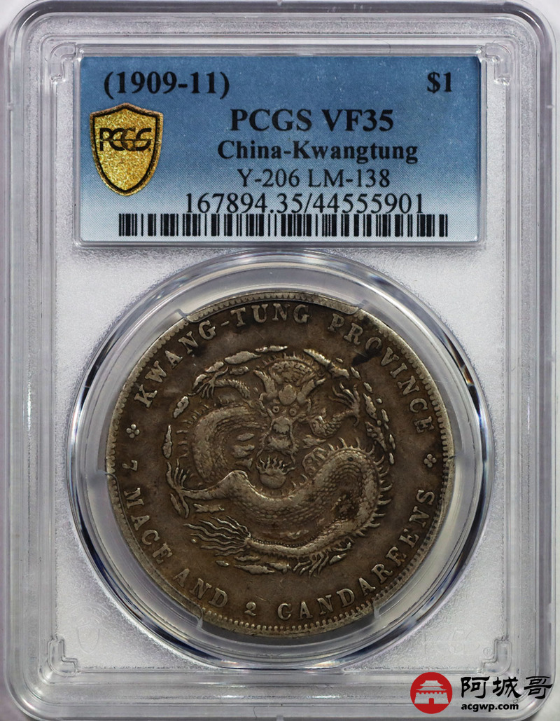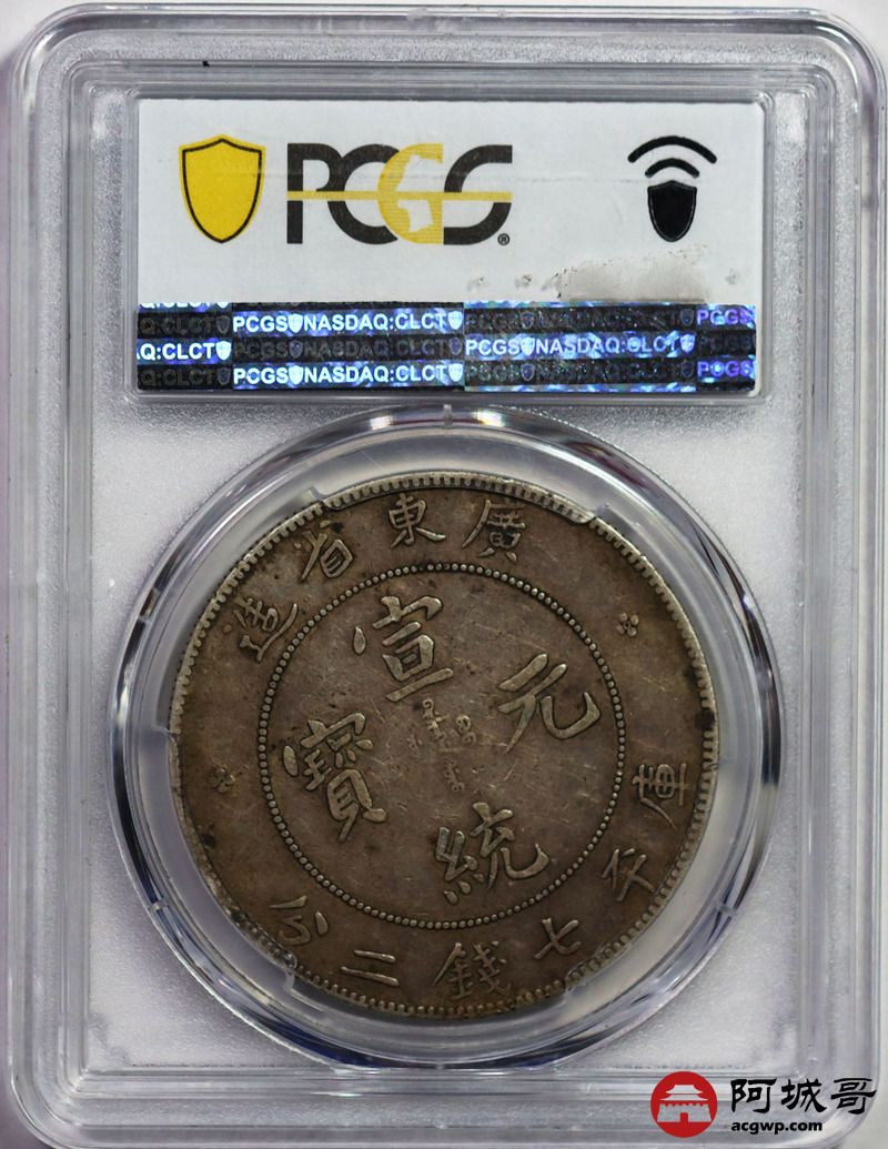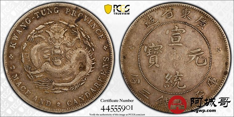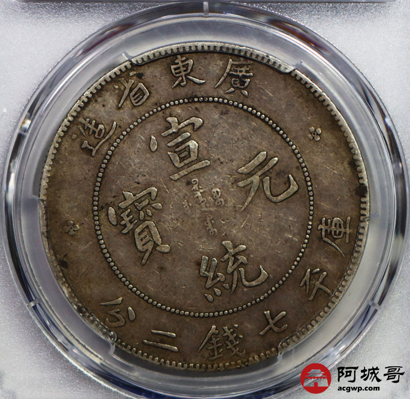 Lot:19 全深打 黄油褐彩老包浆 广东宣统七钱二分 PCGS VF35