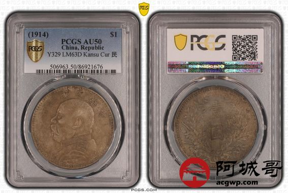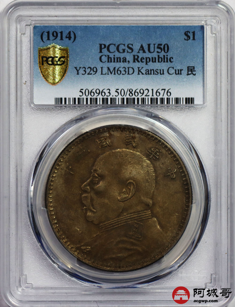 Lot:16 原光 金彩 民国三年大头 甘肃曲笔民 壹元 PCGS AU 50