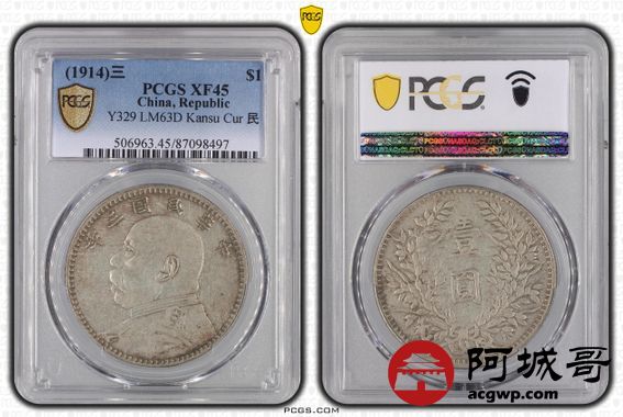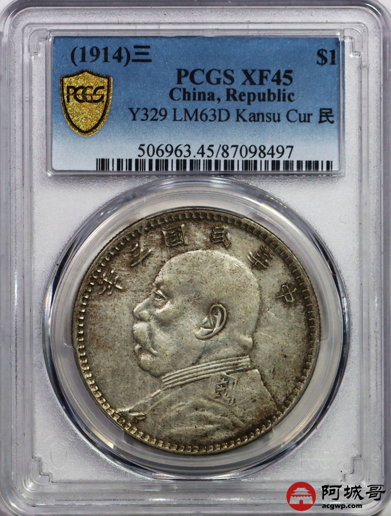 Lot:15 原味 清包浆 民国三年 曲笔民 壹元 PCGS XF 45