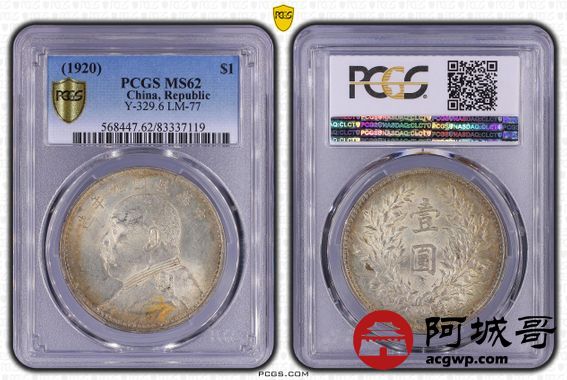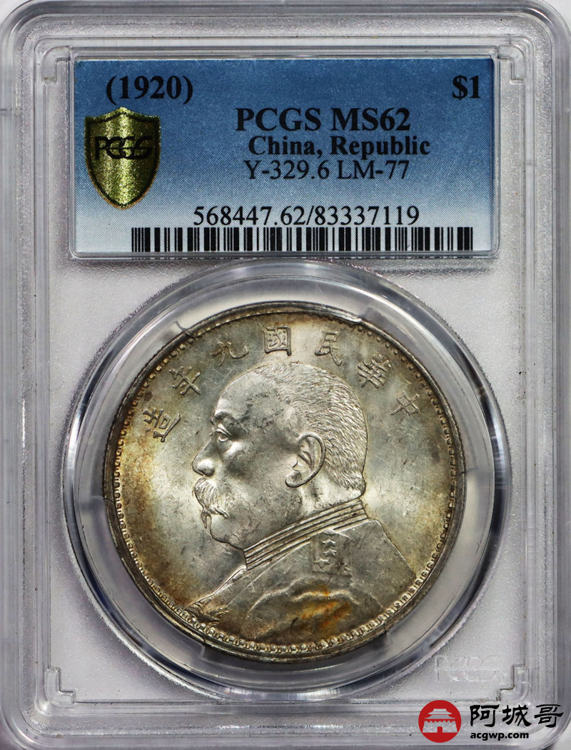 Lot:41 原光 淡彩光民国九年精发壹元 PCGS MS 62