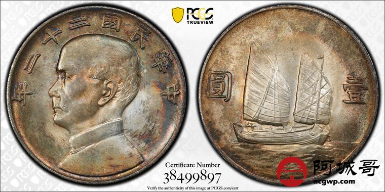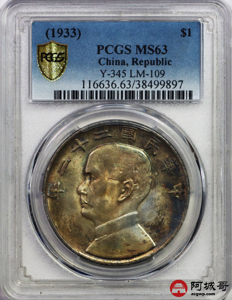 Lot:4 原光 五彩 民国22年船洋壹元 PCGS MS 63