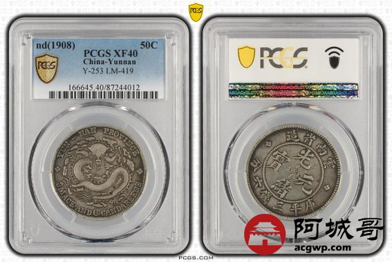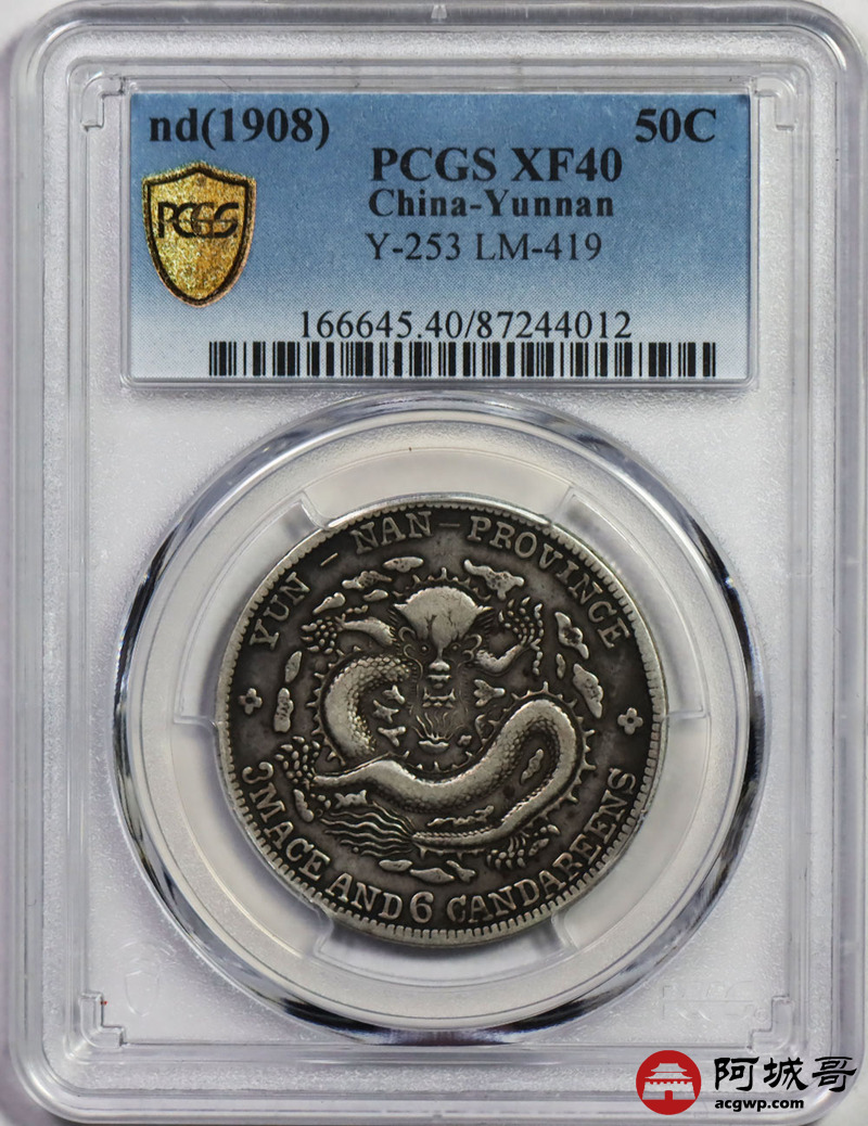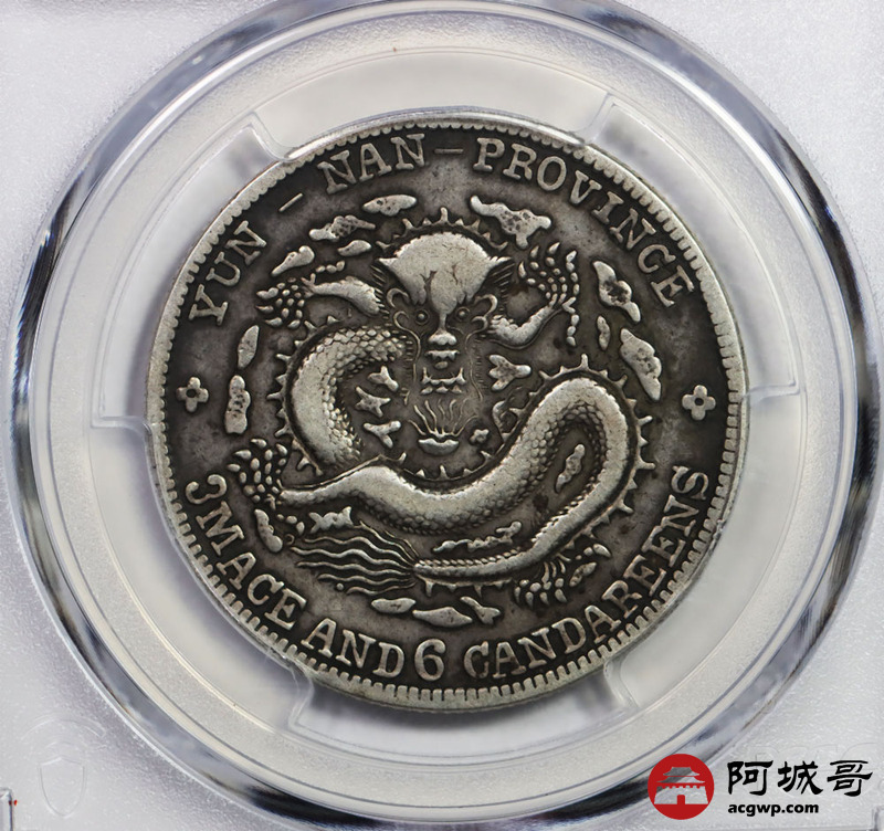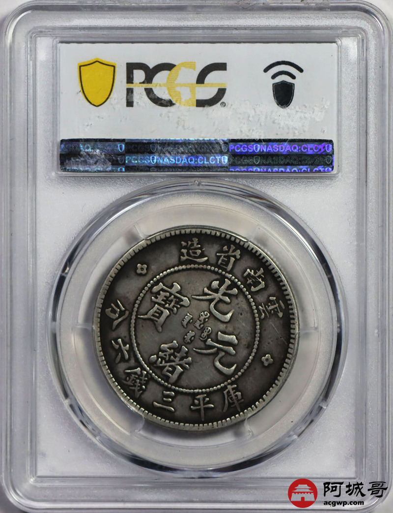 Lot:31 全深打酱彩黑包浆背逆云南老龙光绪三钱六分 PCGS XF40