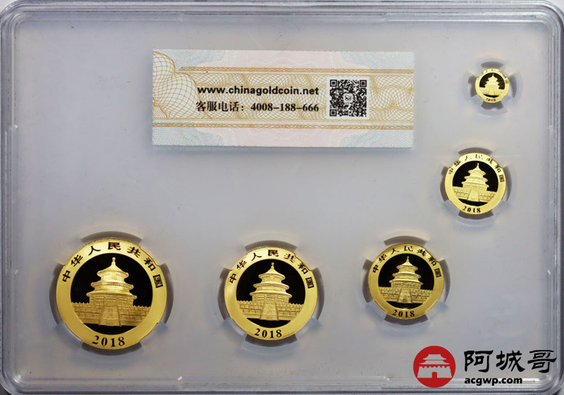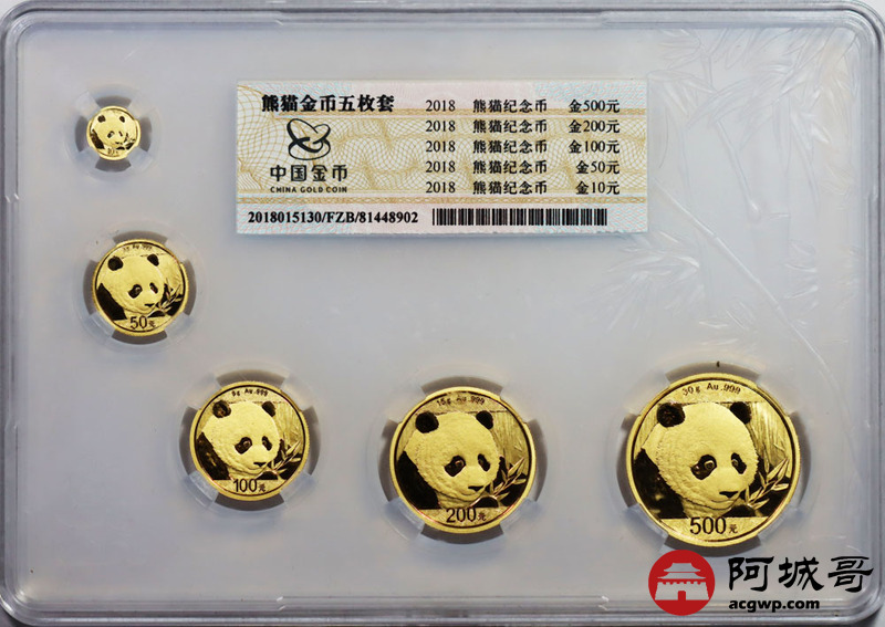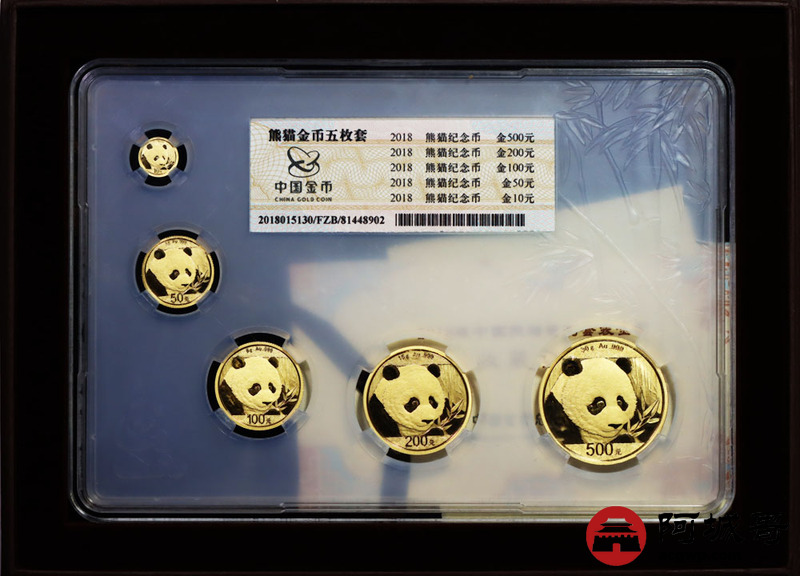 Lot:33 2018熊猫套币 10元1克-50元3克-100元8克-200元15克-500元30克 金总原盒带证