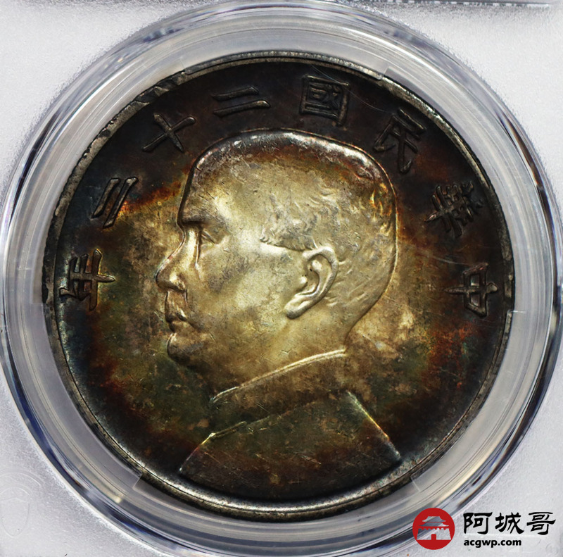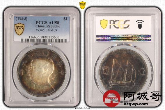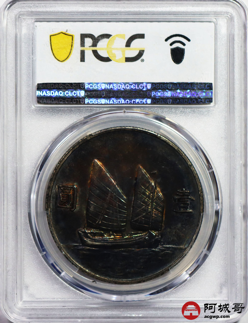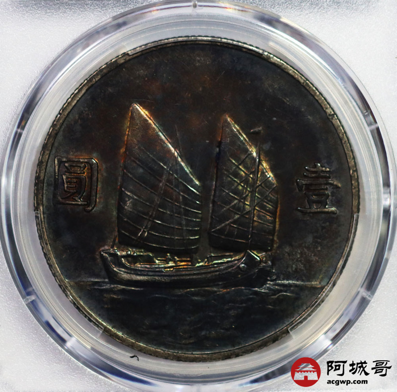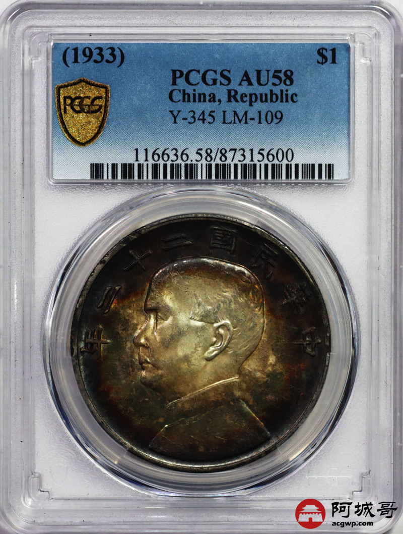 Lot:35 原味 炫丽五彩 民国22年船洋壹元 PCGS AU 58