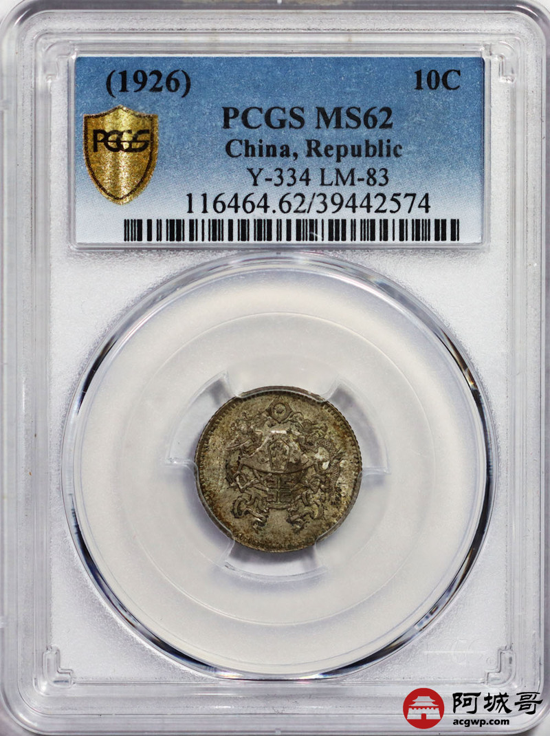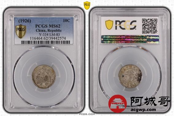 Lot:6 原味 底光 民国15年 龙凤一角 PCGS MS 62