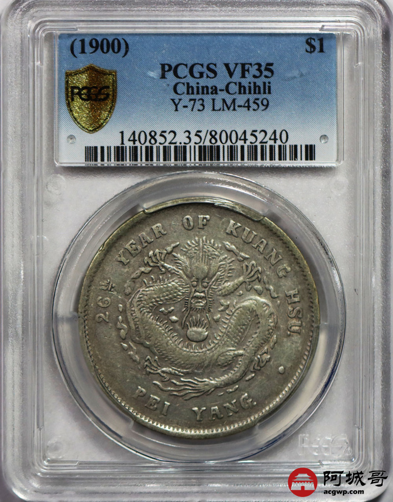 Lot:24 原味 清包浆 北洋26年龙洋 七钱二分 PCGS VF 35