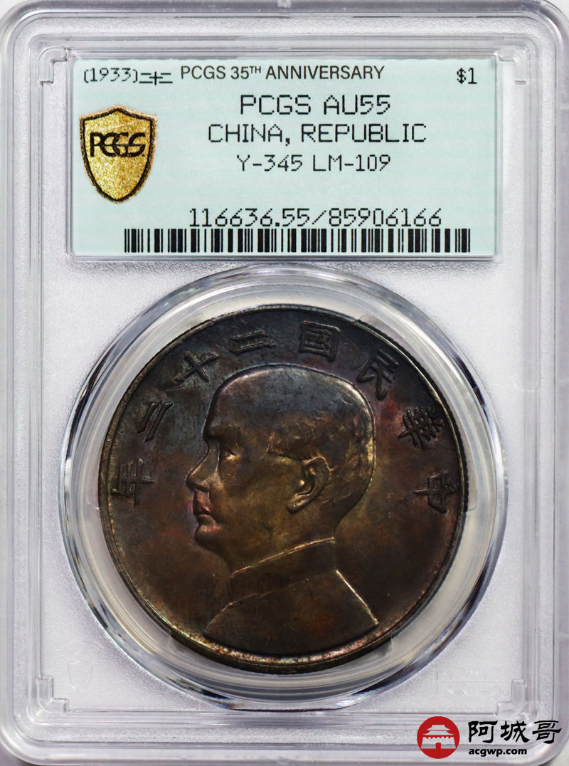 Lot:null 原光 五彩 民国22年船洋壹元 PCGS AU 55