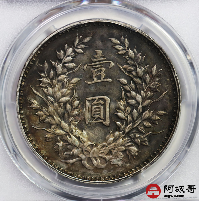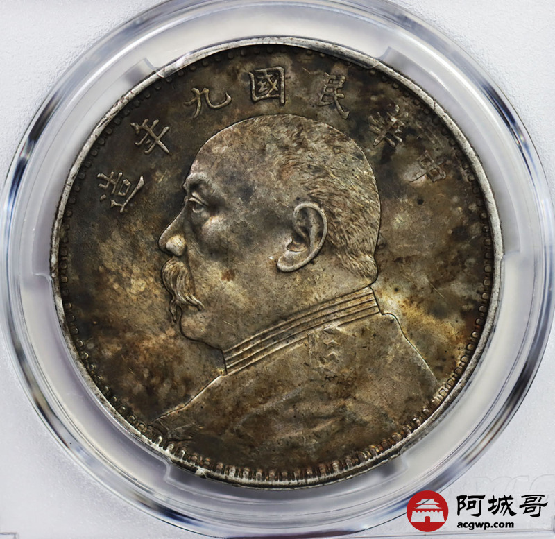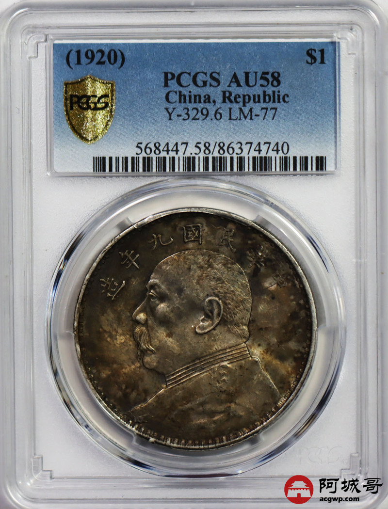 Lot:27 原味 五彩包浆 民国九年精发壹元 PCGS AU 58