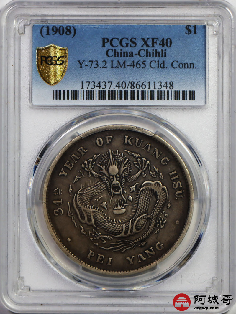 Lot:12 原味老包浆北洋34七钱二分 PCGS XF40