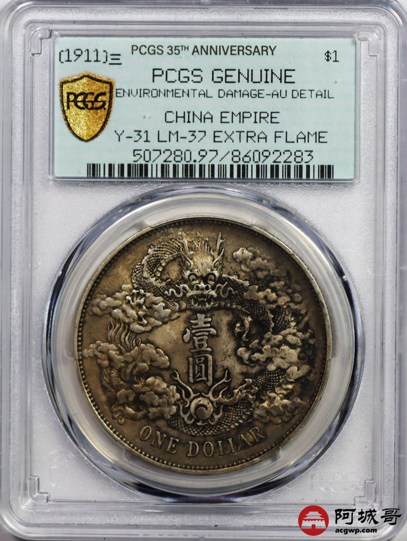 Lot:6 原味 包浆 大清宣三壹元 PCGS AU