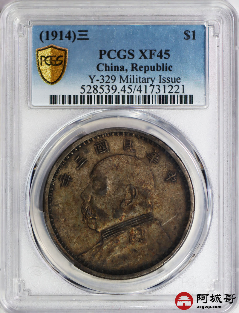 Lot:23 原味 包浆 民国三年大头 壹元 军阀 PCGS XF 45