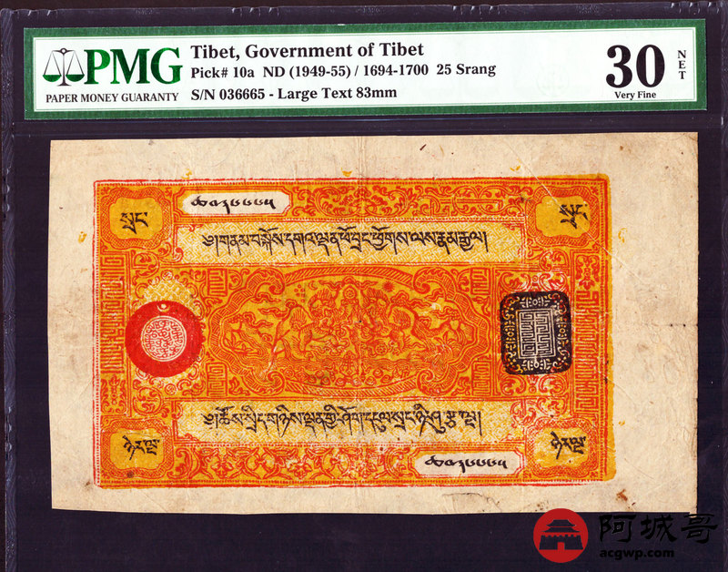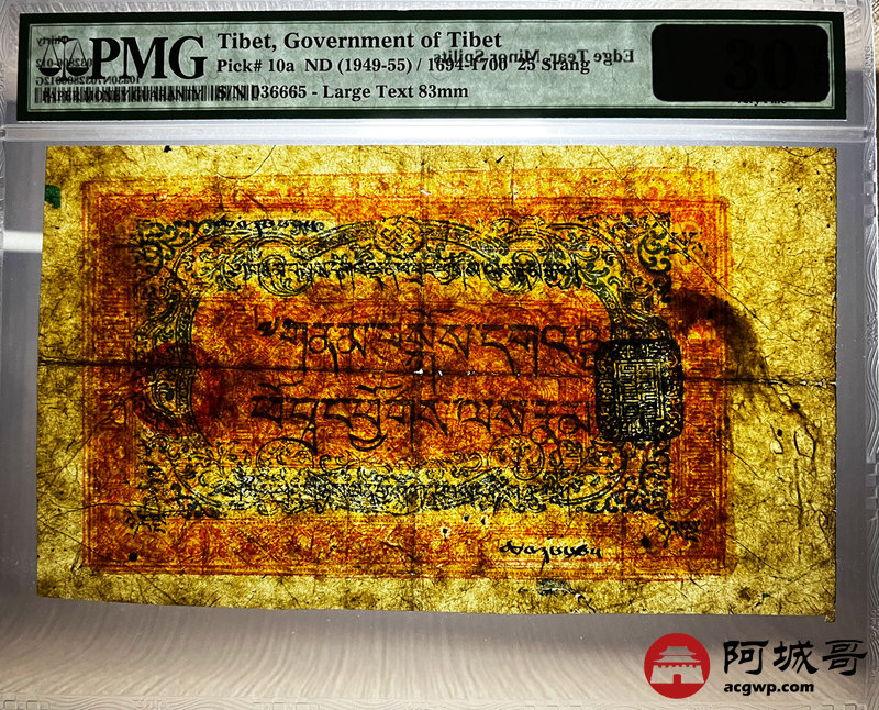 Lot:15 民国老纸币 西藏 25两 PMG 30 原汁原味