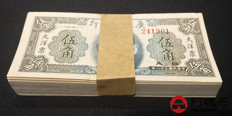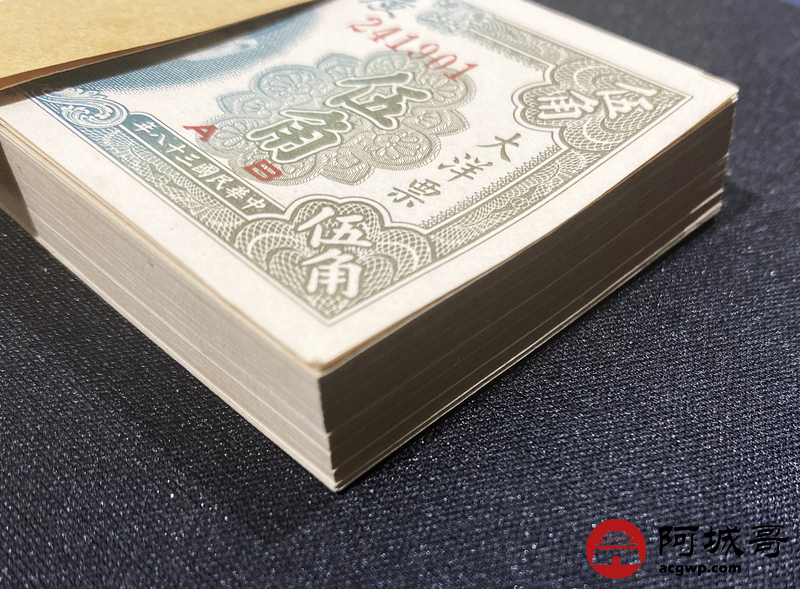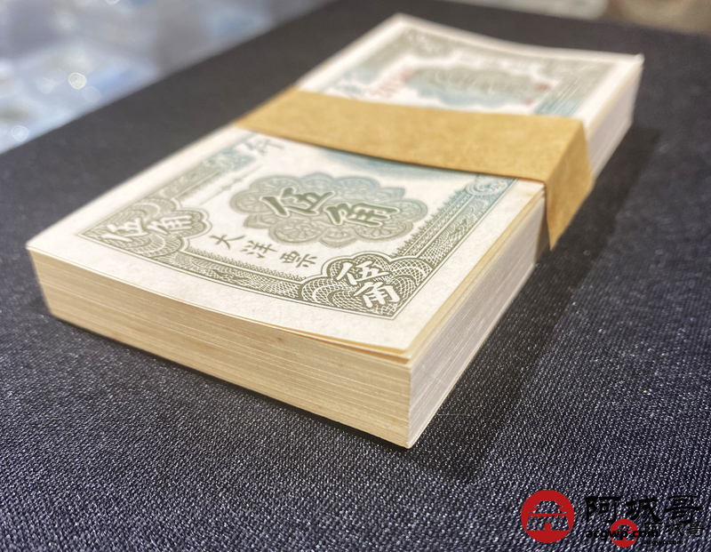 Lot:8 广东省银行 民国38年 伍角一刀 原票98至全新