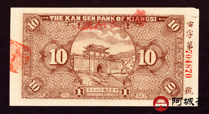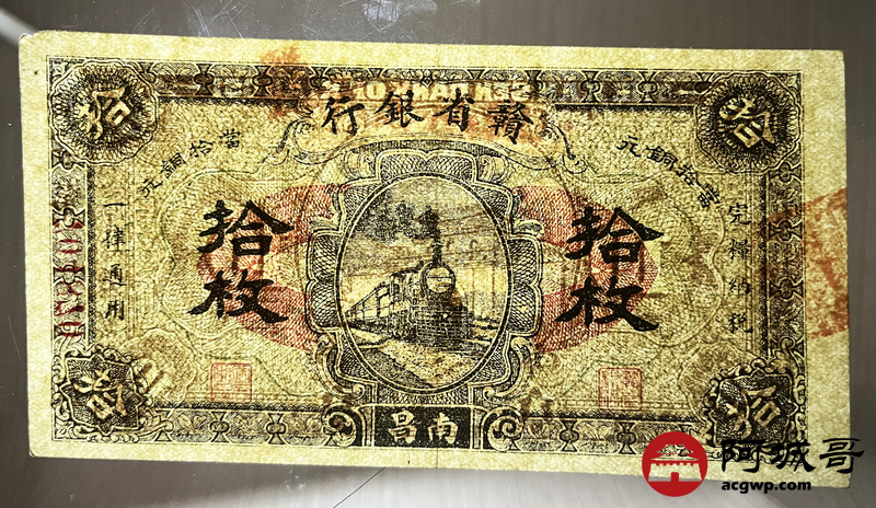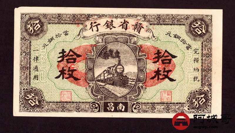Lot:5 民国14年 赣省银行 拾枚 南昌地名 原票 92成新