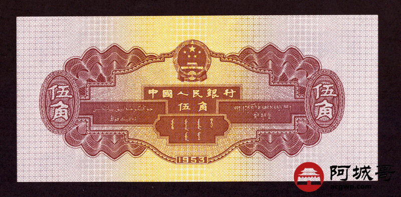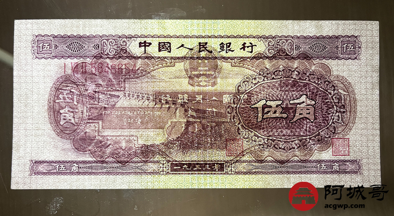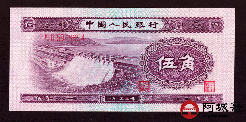 Lot:19 二版 1953年 深水坝伍角 原票 微有折痕 9成新
