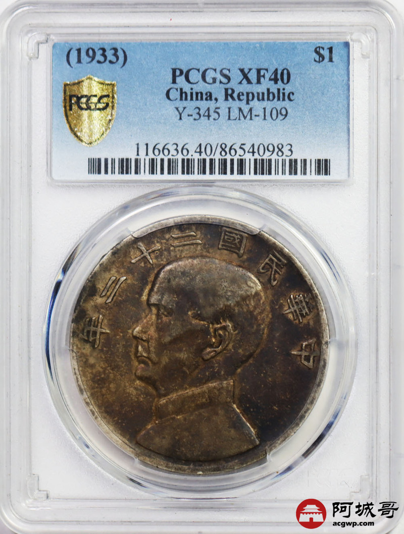 Lot:25 原味 酱彩 民国22年船洋壹元 PCGS XF 40