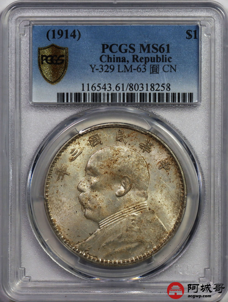 Lot:43 原味 转光 民国三年三角元 PCGS MS 61