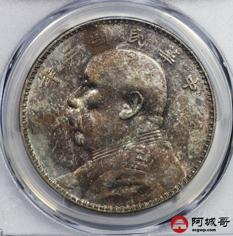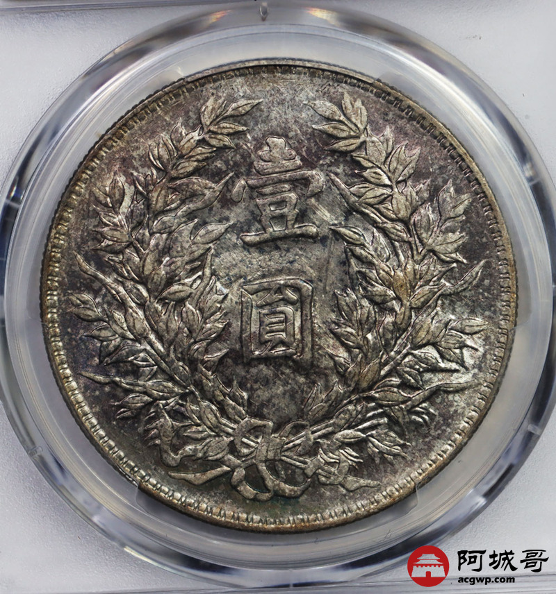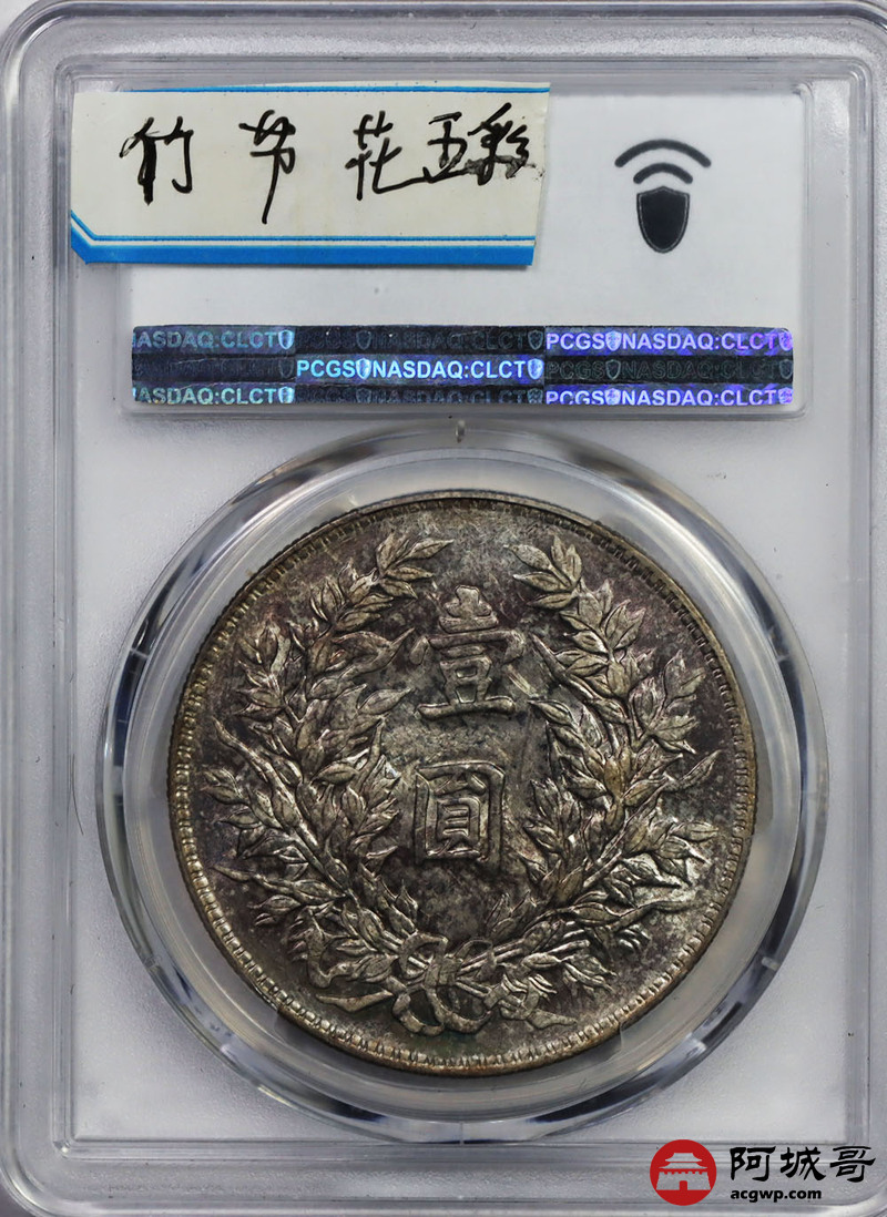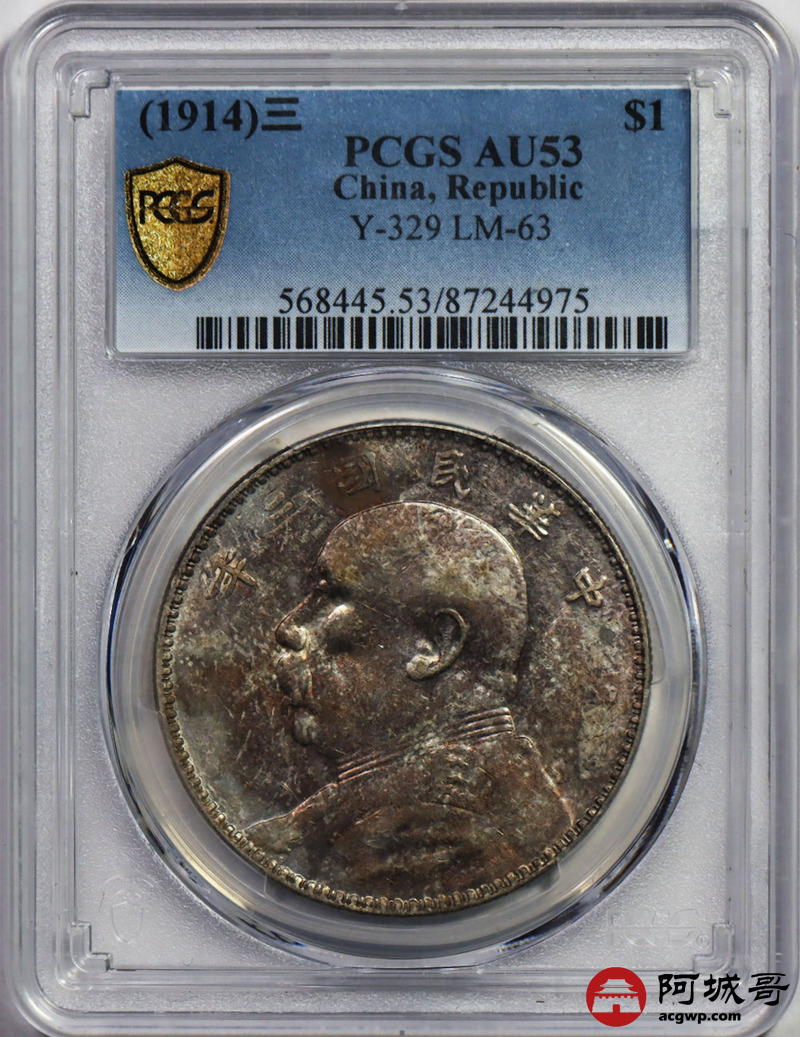 Lot:16 原味五彩 民国三年大头 竹节花 壹元 PCGS AU 53