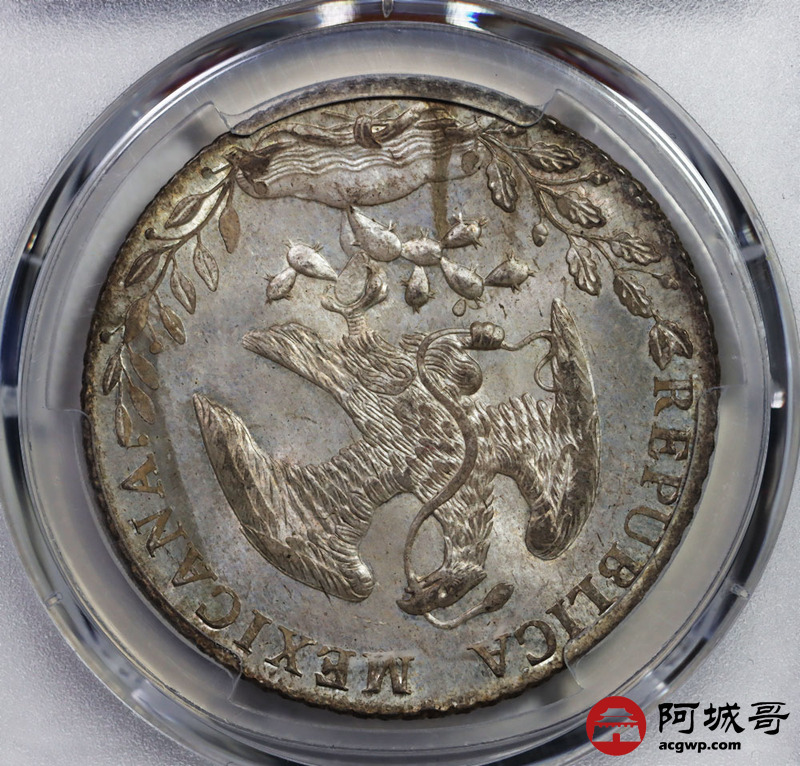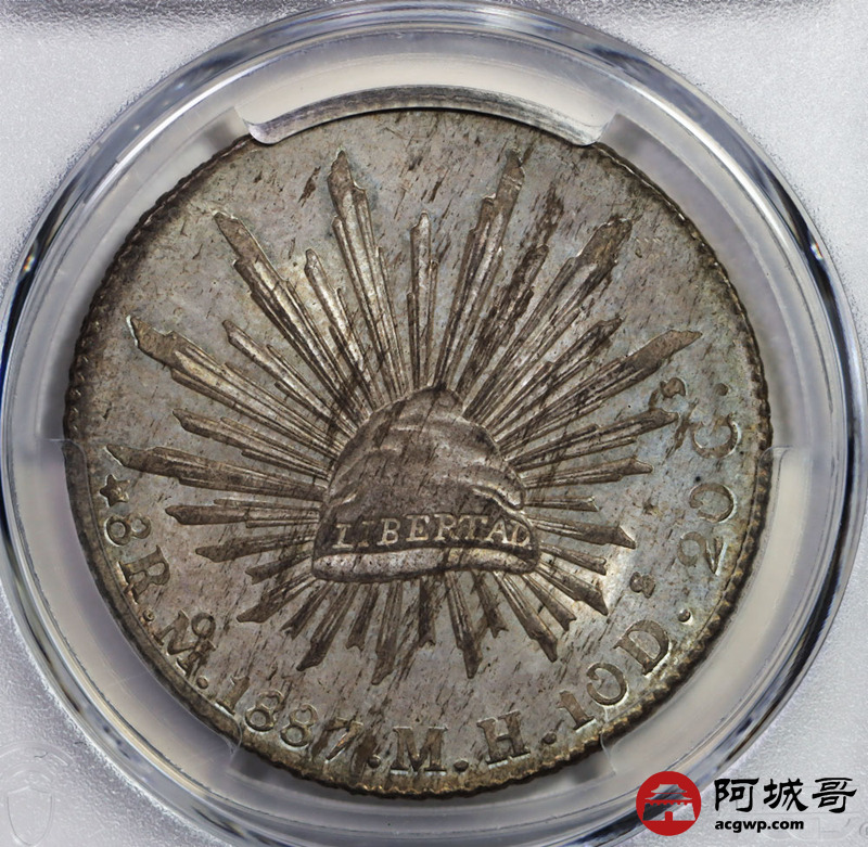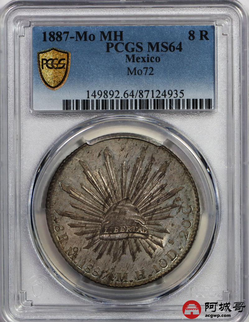 Lot:33 原味 淡彩光 1887年 墨西哥鹰洋 8瑞尔斯 PCGS MS 64