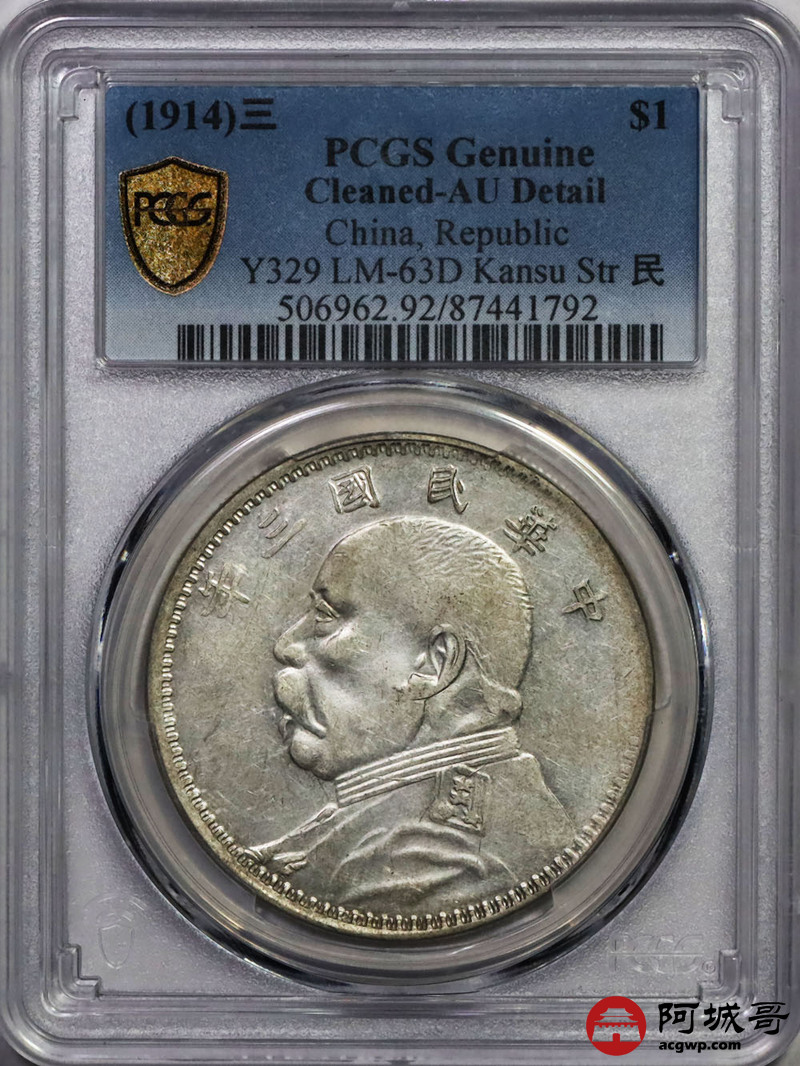 Lot:12 底光三年大头甘肃曲笔民 小曲 PCGS AU