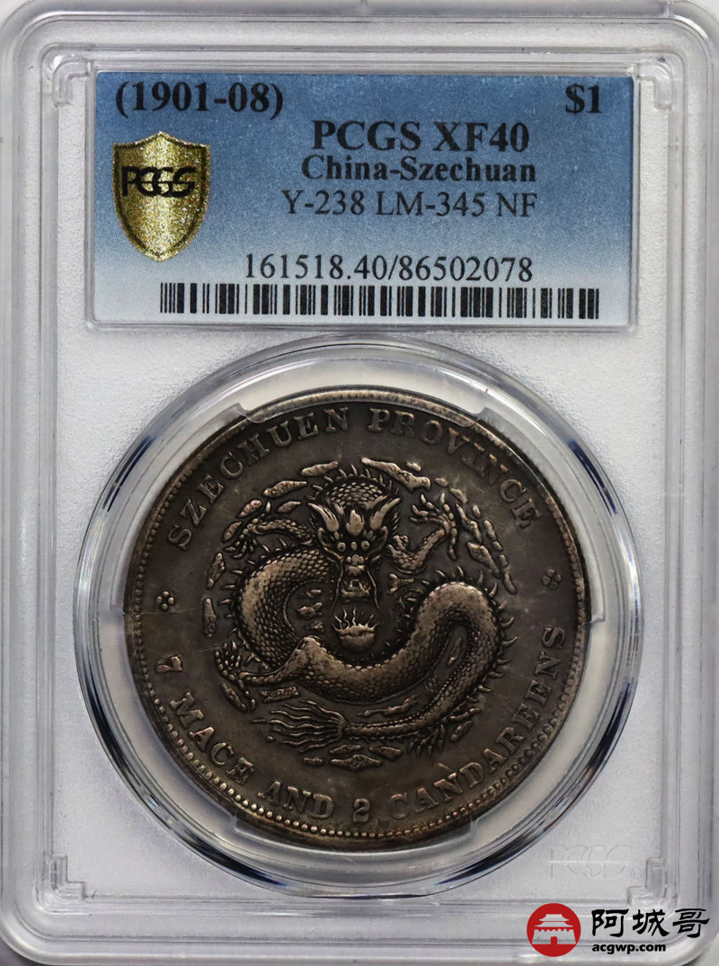Lot:24 原味 包浆 四川 光绪龙洋 七钱二分 PCGS XF 40 圈珠 建毛龙