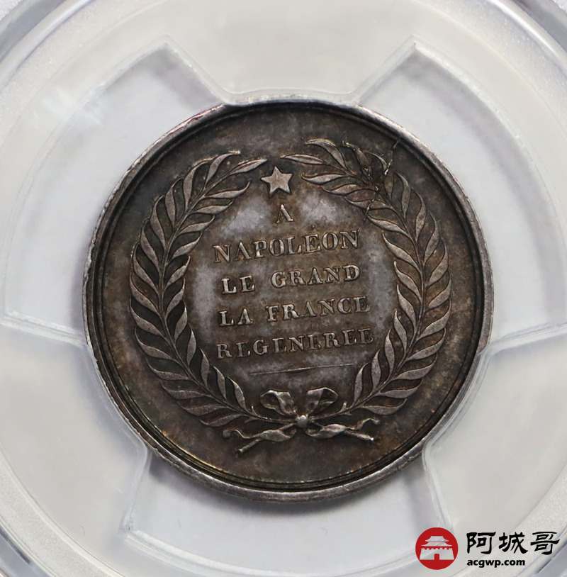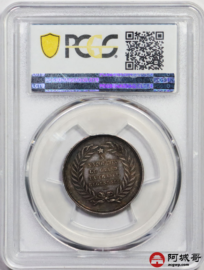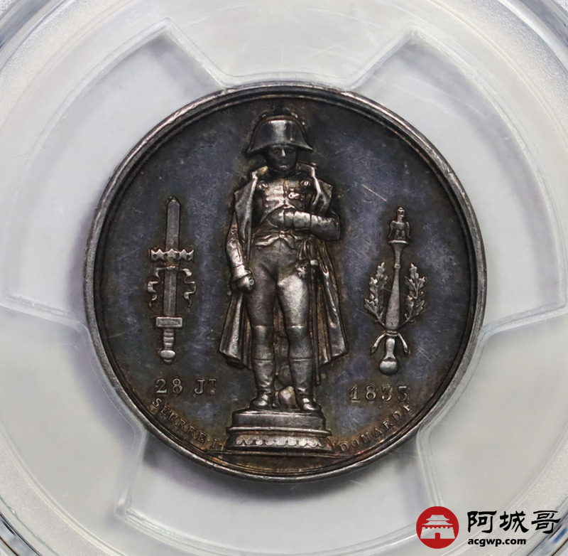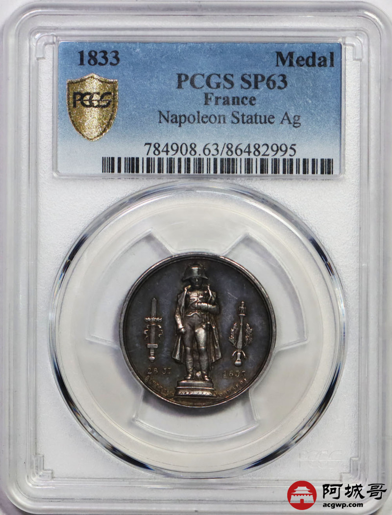 Lot:8 百年酱彩黑包浆1833年法国拿破仑银质样章 P盒最高分 唯一入盒 PCGS SP63