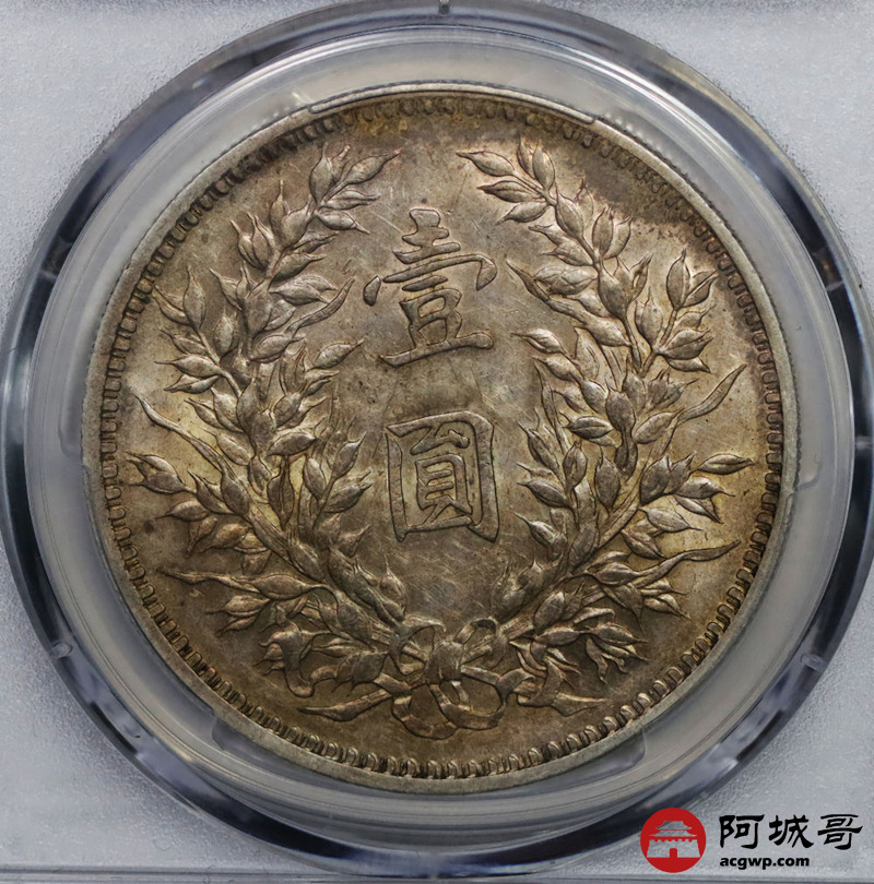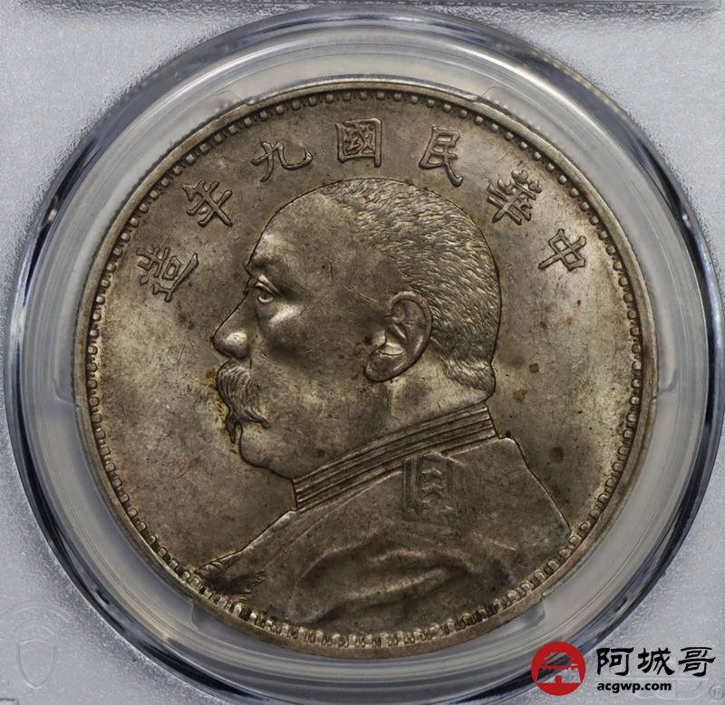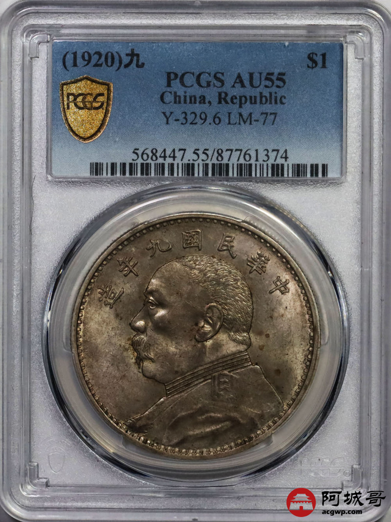 Lot:2 原味转光 民国九年大头 壹元 九精三背 直胡须 PCGS AU 55