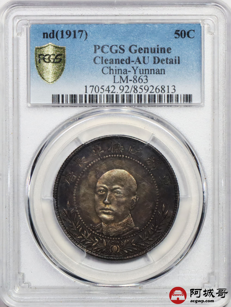 Lot:35 原味 五彩包浆光 唐继尧正像 半圆 PCGS AU
