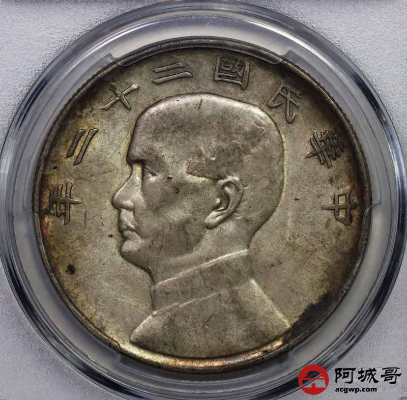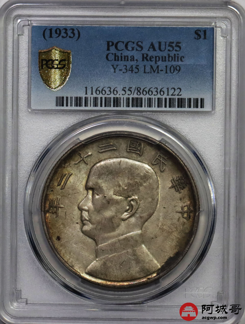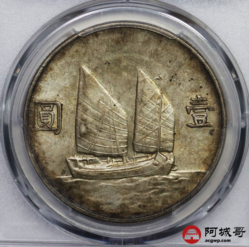 Lot:37 原味 淡彩 民国22年船洋壹元 PCGS AU 55