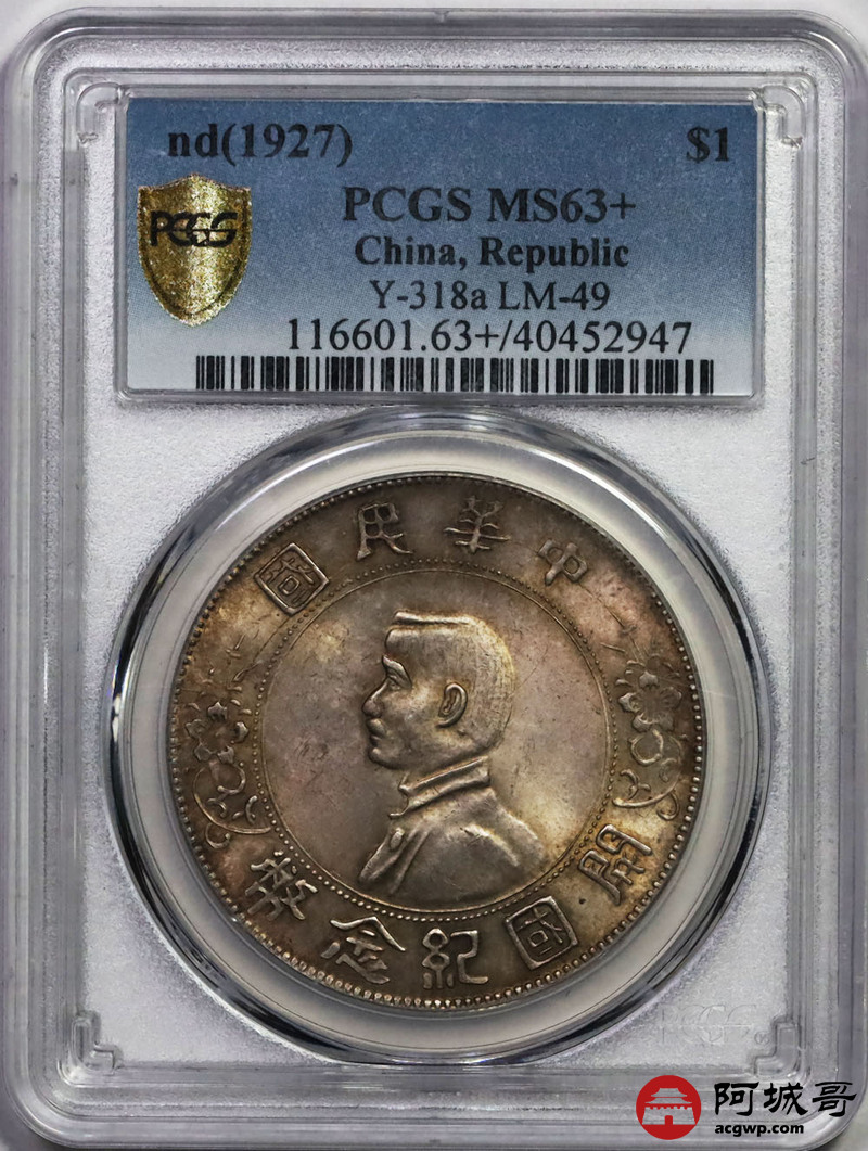 Lot:30 原光 五彩转光 开国纪念孙小头 壹元 PCGS MS 63+