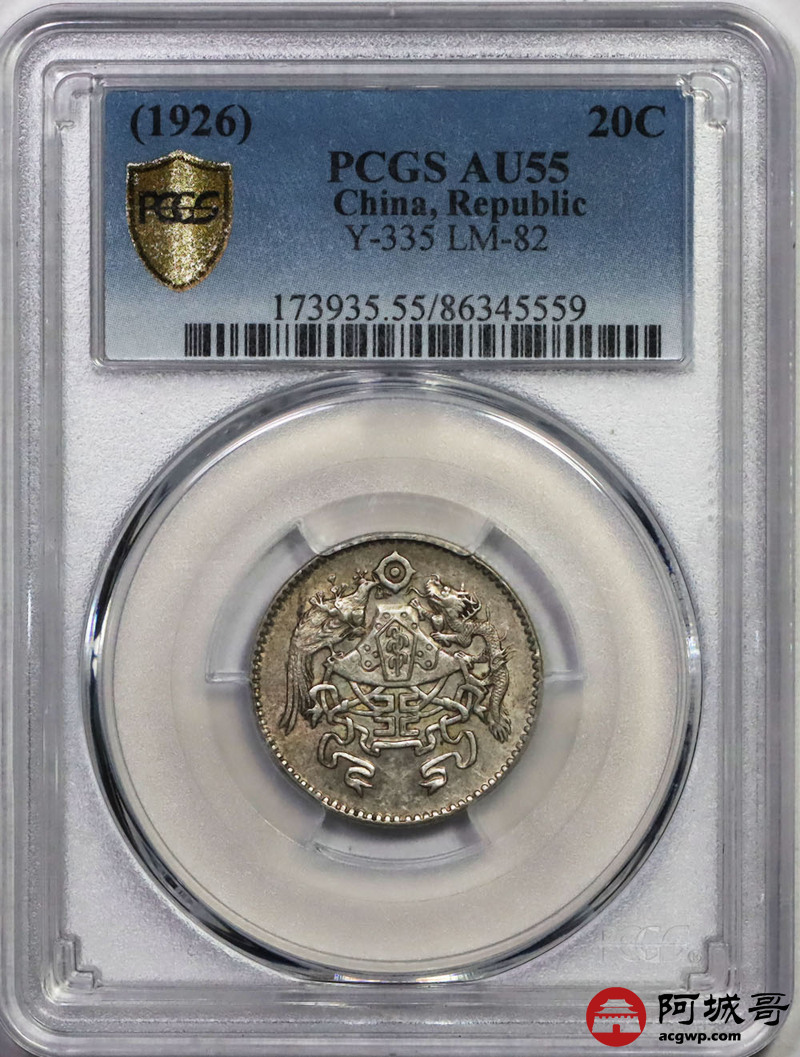 Lot:17 黄油底光 民国十五年龙凤贰角 PCGS AU55