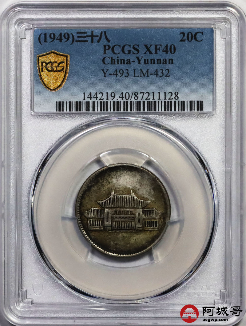 Lot:1 老包浆 民国三十八年云南胜利堂贰角 PCGS XF40