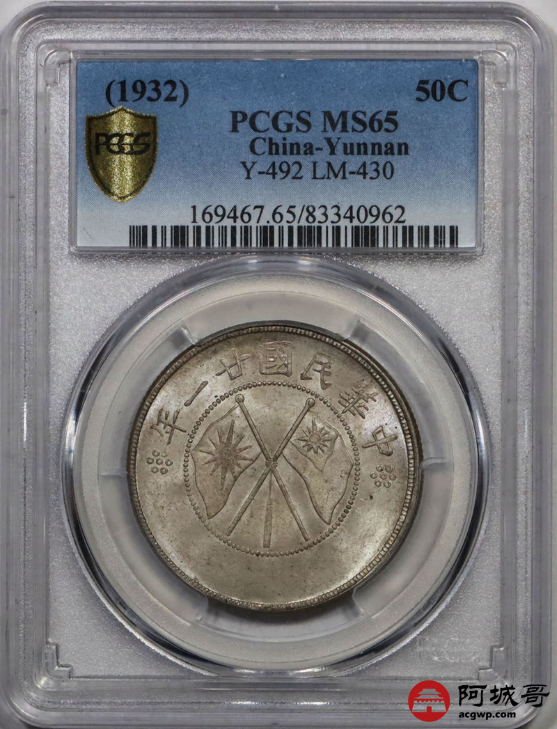 Lot:13 原光 云南双旗半圆 PCGS MS65