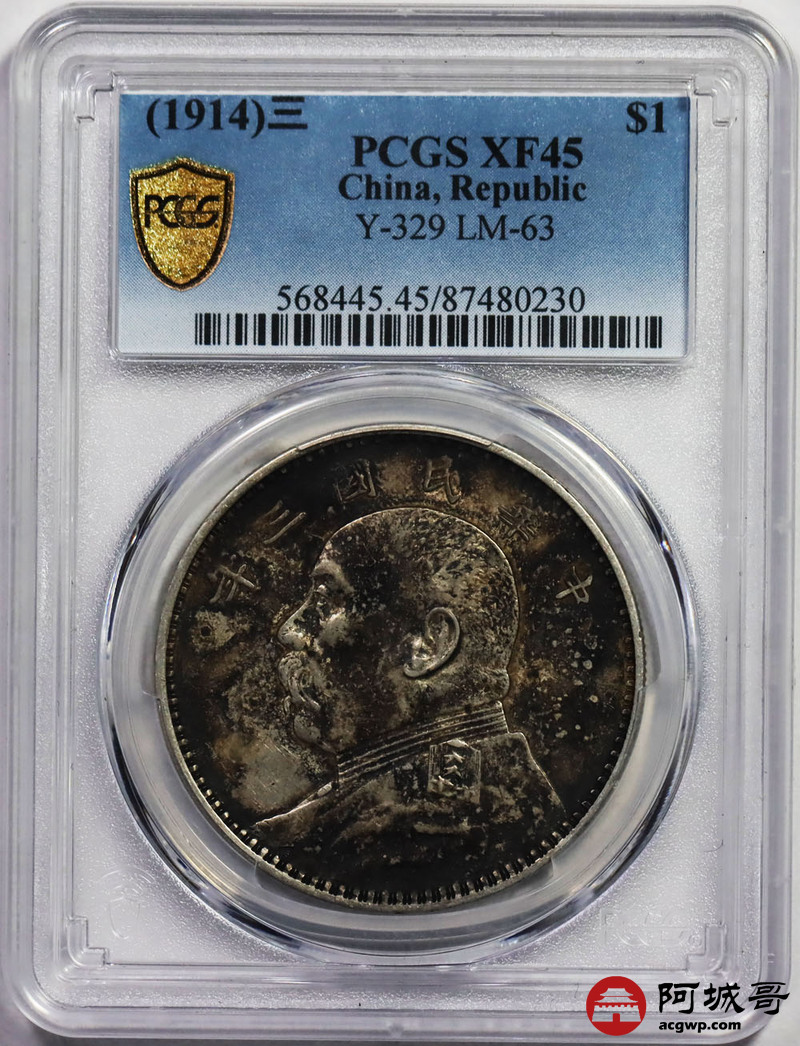 Lot:14 三年大头老酱彩天津初版大宽边底板转光PCGS XF45