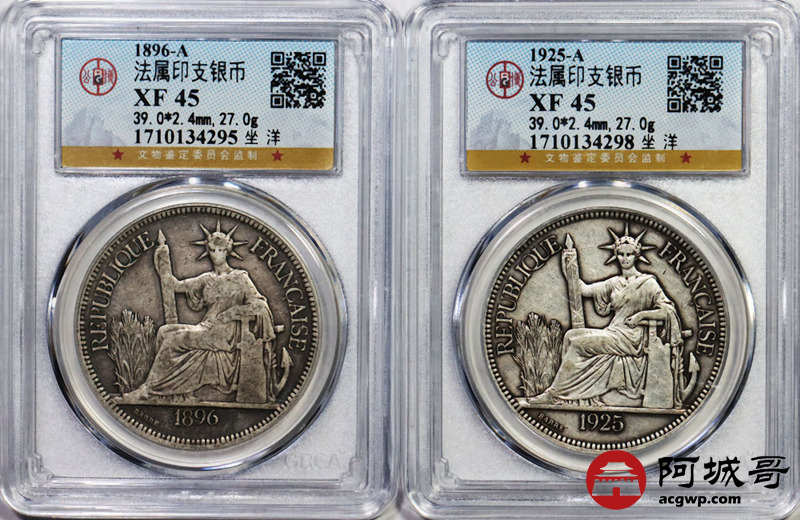 Lot:8 老包浆1925、1896 年坐洋 公博XF45两枚