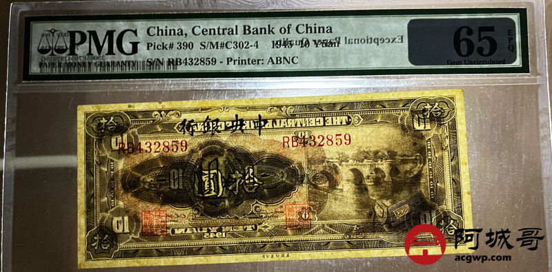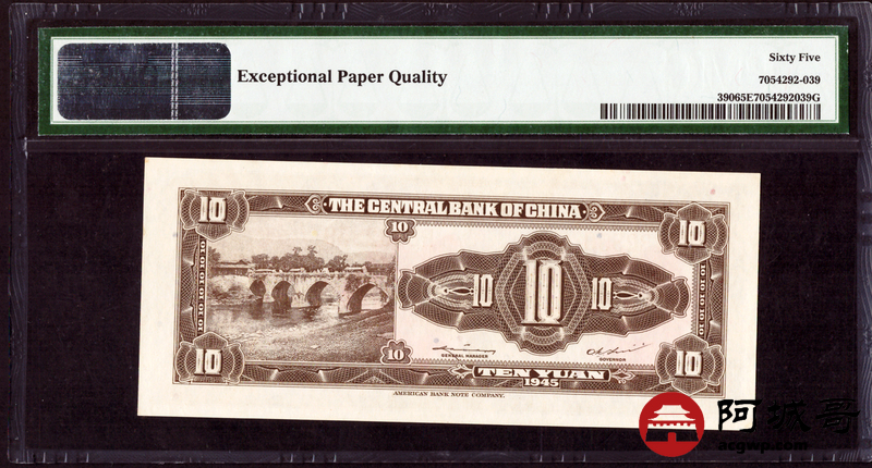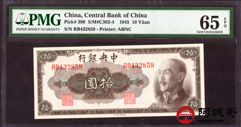 Lot:21 1945年 中央银行 拾圆 PMG 65EPQ