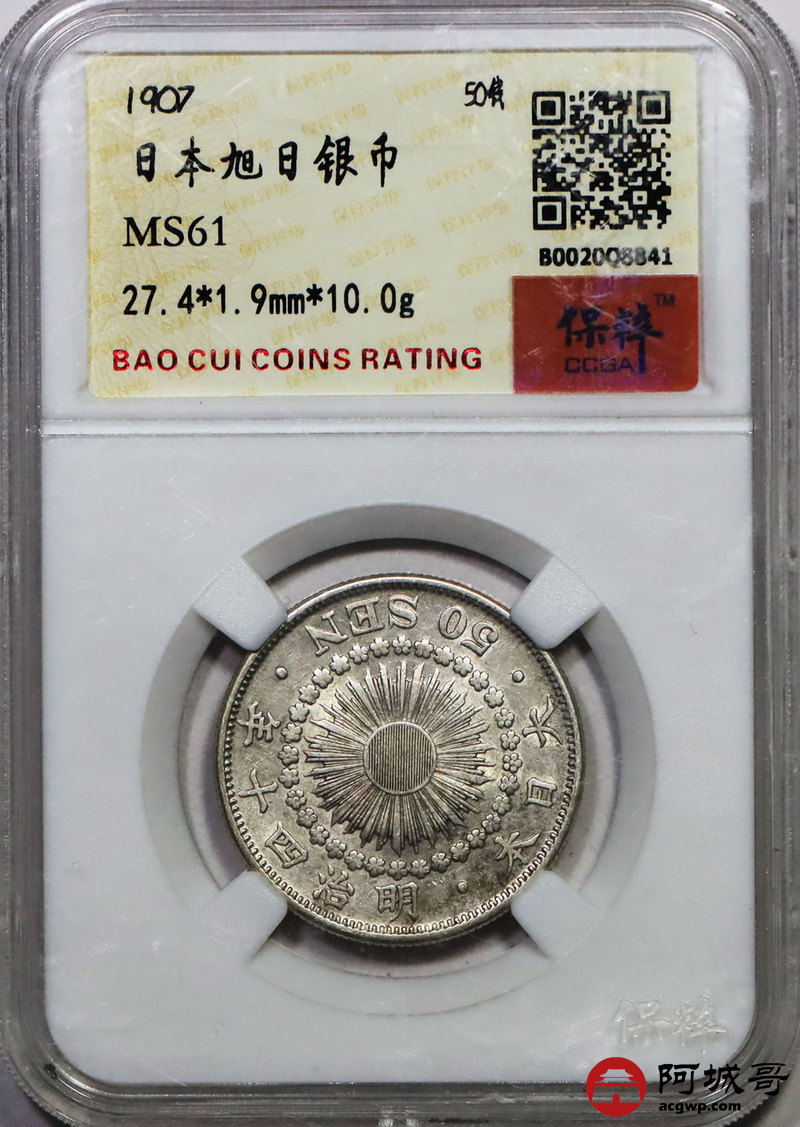 Lot:null 原味 1907年民国40年 银币 两角 保粹 MS 61