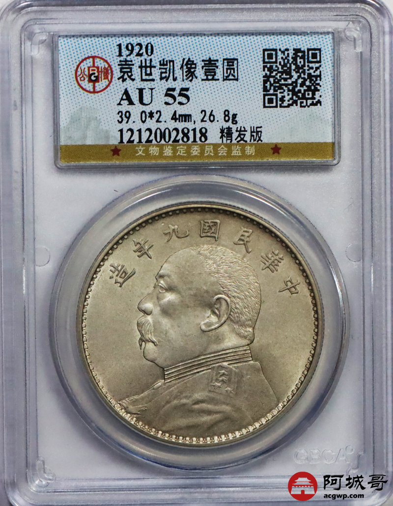 Lot:30 原味 底光 民国九年精发壹元 公博 AU 55