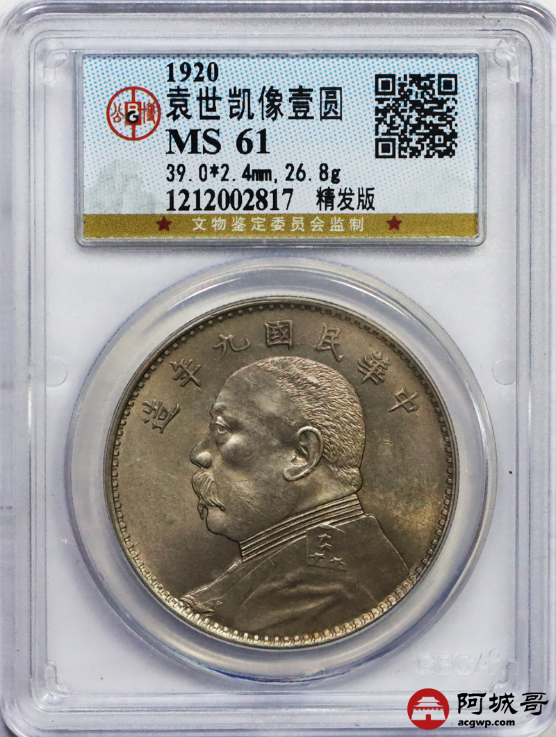 Lot:40 原味 底光 民国九年精发 壹元 公博 MS 61