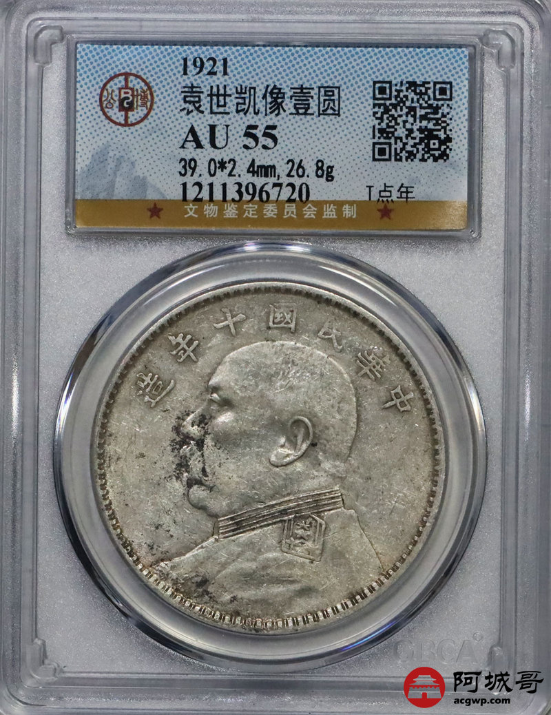 Lot:36 底光 民国十年大头 壹元 公博 AU 55